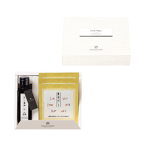 6種類の国産素材を使用した、風味豊かなだしパックと素材の旨味が溶け込む、だし醤油のセットです。
