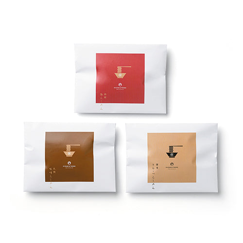 函館らーめん半生麺(ちぢれ麺)100g×3、札幌らーめん半生麺(中太麺)100g×3、博多らーめん半生麺(細麺)100g×3、函館塩らーめんつゆ×3、札幌みそらーめんつゆ×3、博多とんこつらーめんつゆ×3