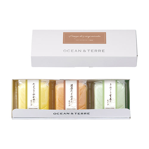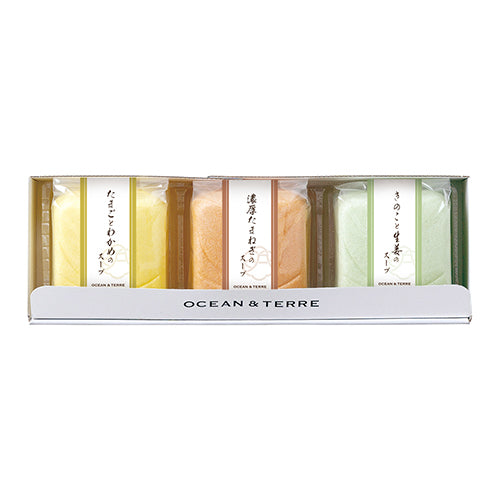 たまごとわかめのスープ最中11.3g×1、濃厚たまねぎのスープ最中9.9g×1、きのこと生姜のスープ最中11.4g×1