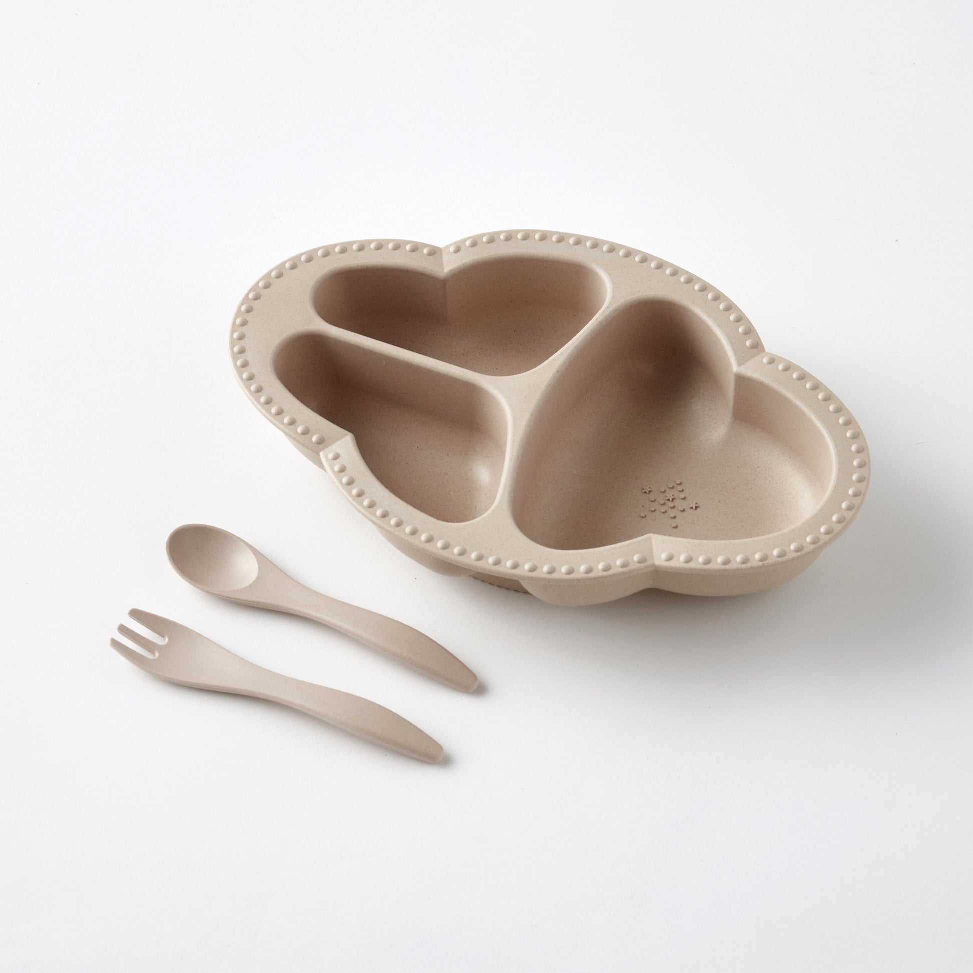 離乳食~食べる練習までできる設計 メインのお部屋には星型の突起があり、果物や野菜をすりつぶしながら食べさせることができます。各お部屋のアーチをスプーンの角度に合わせ、お子さまご自身でも隅々まですくいやすくし、離乳食完了後も長く使っていただけます